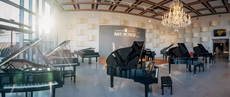 Het begon bijna als een sprookje: Antonín Petrof (1839–1915), oorspronkelijk timmerman, ontdekte het pianomakersvak tijdens een leerperiode in Wenen. Terug in Hradec Králové bouwde hij in 1864 zijn eerste piano en transformeerde de werkplaats van zijn vader tot een pianomanufactuur. Al snel groeide Petrof uit tot een toonaangevend merk in Europa. Rond de eeuwwisseling werden de instrumenten al geëxporteerd naar concertzalen wereldwijd en kreeg Antonín Petrof de titel van hofleverancier van Zijn Majesteit. Ondanks de turbulente 20e eeuw (oorlogen, nationalisatie en privatisering) overleefde het merk en groeide het uit tot de grootste Europese producent van akoestische piano’s. Tegenwoordig produceert Petrof jaarlijks ongeveer 2.000 vleugels en 12.000 pianino’s, voor markten in Oost-Europa, Japan en de Verenigde Staten.