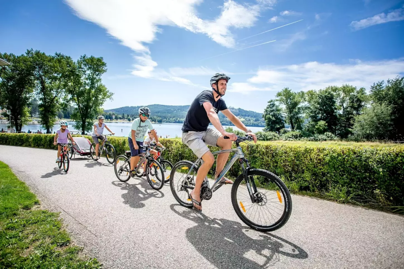 - Jezerní stezka Lipno – Frymburk: ongeveer 15 km langs het meer, kort en overzichtelijk, ideaal voor kinderen die hun eigen tempo willen rijden. Met kleine heuveltjes, bochten en uitzicht op het water.